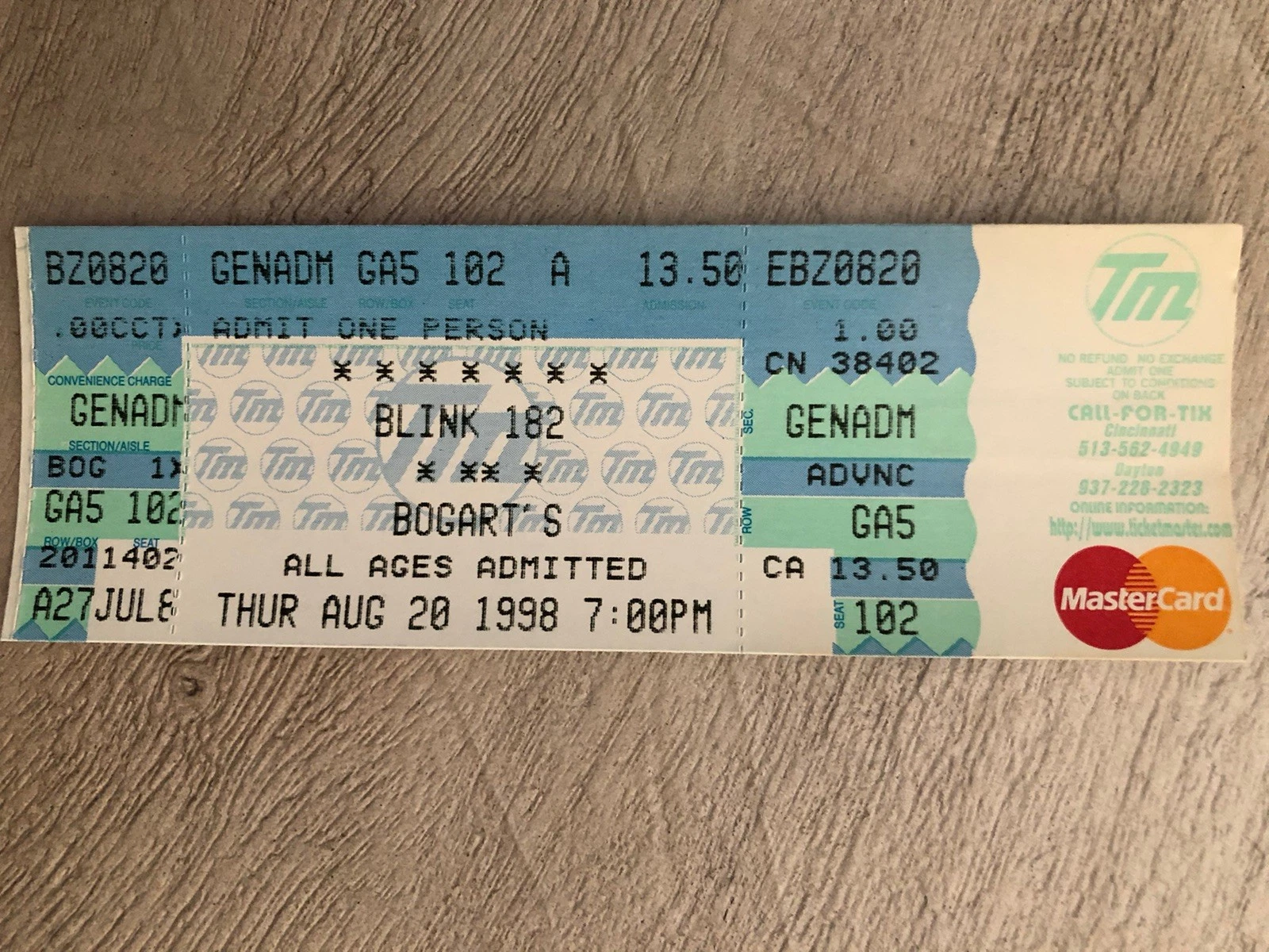 9/24/1998: The band performs at the Newport Music Hall in Columbus, Ohio. Other bands included Unwritten Law and Assorted Jelly Beans. Ticket